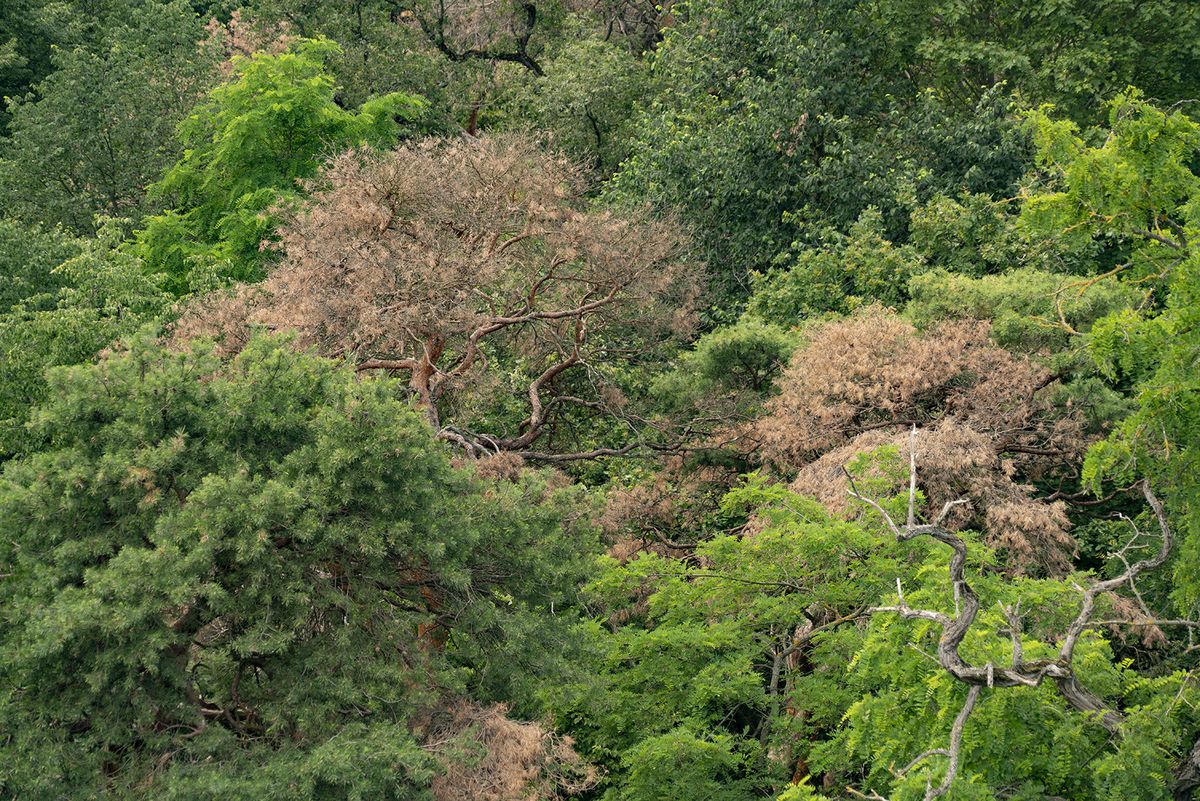 Trockenheit, Pilzkrankheiten und Borkenkäfer setzen dem Mainzer Lennebergwald zu. Viele Bäume sind kaum mehr zu retten. Den Kampf gegen den Klimawandel will der Revierförster aber nicht aufgeben.