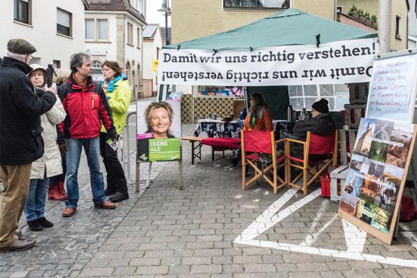 Nichts desto trotz, der nächste Samstag kommt und dort freuen sich ihre Grünen über reges Interesse am vierten und letzten Teil der Aktion „DAMIT WIR UNS RICHTIG VERSTEHEN“  vor der Waldsporthalle mit dem Untertitel  „Wo man gewesen sein muss“. (von Klaus Neuhaus)