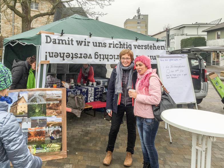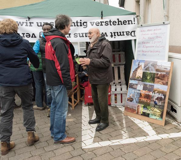 Was muss man gehört haben, um ein guter Budenheimer zu werden. Die Kirchenglocken um 18:00 Uhr, damit die Kinder wissen, dass es gleich Abendbrot gibt - so ein Beitrag einer Bu-denheimerin. Am letzten Samstag hatten die GRÜNEN wieder zu ihrer Aktion ‚Damit wir uns richtig verstehen’ in ihren Pavillon eingeladen. Sie wollen von Budenheimer/-innen wissen, was ein Flüchtling wissen sollte, damit die Integration in Budenheim gut gelingt. Leider kamen nur wenige Budenheimer/-innen mit einer konkreten Vorstellung davon, was ein Flüchtling gehört haben sollte. Die Gespräche mit Passanten, die zufällig vorbei kamen oder auf den Bus warteten, waren umso interessanter.