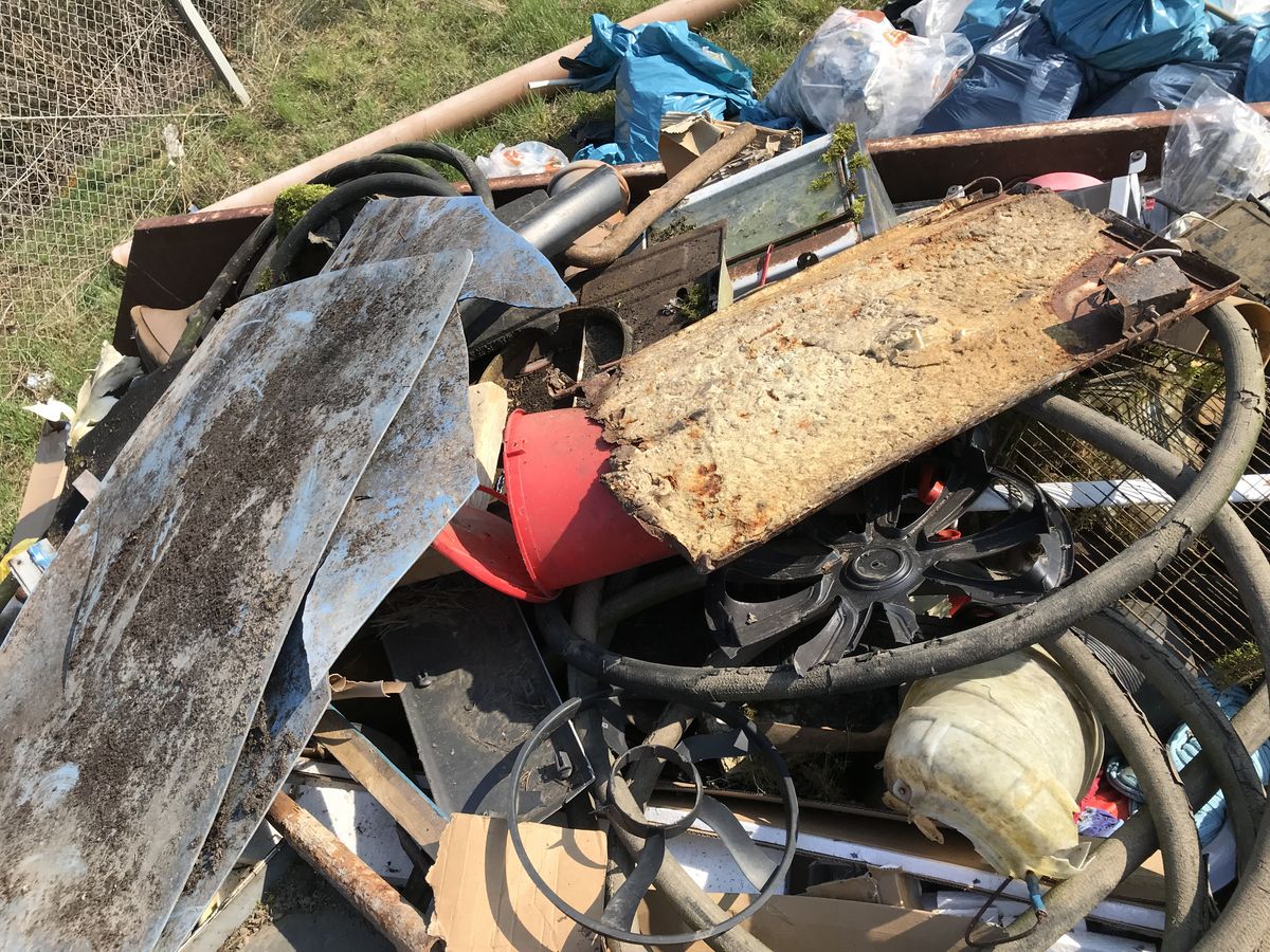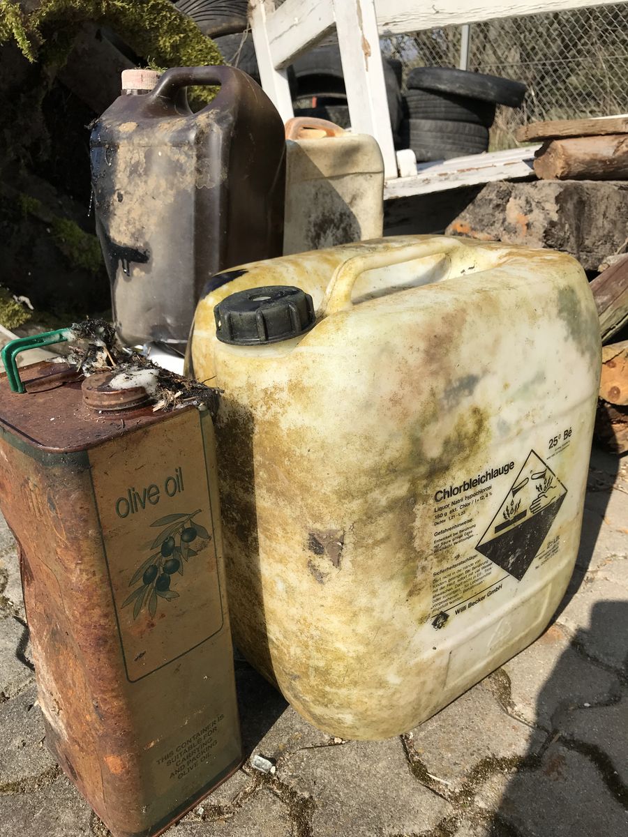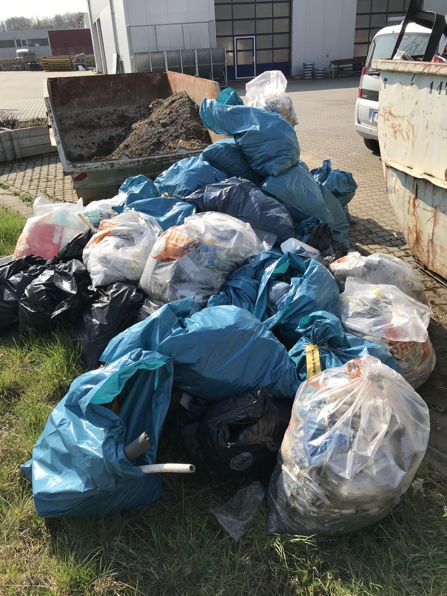 Die fleißigen Müllsammler füllten fast 100(!) Müllsäcke, vornehmlich mit Plastikfaschen, Folien, Verpackungsmaterial. Zudem fand man neben mehreren hundert Glasflaschen aller Kaliber zahlreiche Großteile, angefangen von Elektrogeräten wie Waschmaschine, Kaffeemaschine, Fliesenschneidemaschine, Mikrowelle über Karosserieteilen, Autoreifen, ganze Autoräder, verrottete Schläuche, Autositze, Vogelkäfige, Röhrenfernseher und hunderte von Flaschen aus den Straßenrändern und Untergehölzen in Straßennähe. Am schlimmsten jedoch waren teils undichte Plastikkanister mit Altöl, Farb- und Chemieresten. Die Container auf dem Gelände der Gemeindewerke waren am Ende überfüllt, geschätzte 2 Tonnen Müll kamen zusammen.