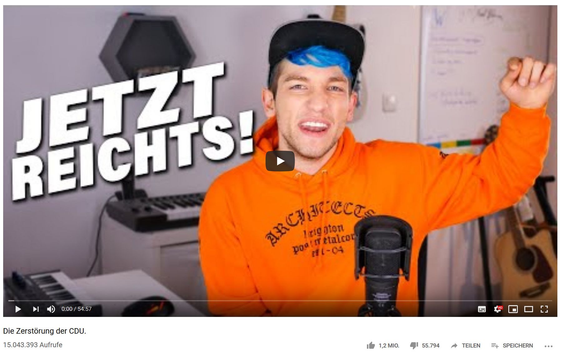 Ein am 18.5. veröffentliches virales Video nimmt das Versagen der CDU/CSU und anderer Parteien hinsichtlich des Klimawandels aufs Korn und erreicht ein Millionenpublikum. (In 4 Wochen über 15 Millionen Abrufe). Eine Woche vor der Europawahl beeinflusst es diese maßgeblich. Die "verurteilten" Parteien reagieren hilflos...
