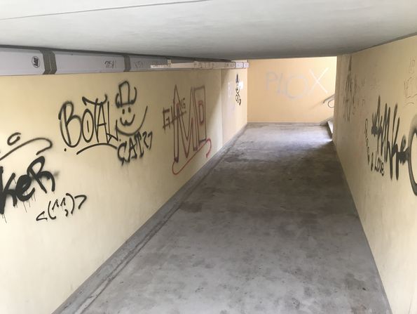 Jahrelang wurde in Budenheim über die Neugestaltung der Bahnunterführungen diskutiert. Die "Durchgangstoiletten" sollten für die Budenheimer wieder "ordentlich" hergerichtet werden. Jedoch, anstatt, wie von uns mehrfach im Ältestenrat und Gemeinderat vorgeschlagen, Graffitikünstler (wiederkehrend) einzuladen, hat man schlussendlich 2015 eine Gestaltung in biederem Beige mit ein paar grauen Streifen realisiert. Eine unausgesprochene Einladung für "Tagger". Es war nur eine Frage "kurzer Zeit", bis die helle Wand mit ersten Tags besprüht wurde. Man musste sich schon beeilen, um den Neuzustand festzuhalten. Die Bilder mit den noch "sauberen" Wänden entstanden kurz nach der Renovierung der Unterführung in der Hauptstraße Ende Dez 2015.
