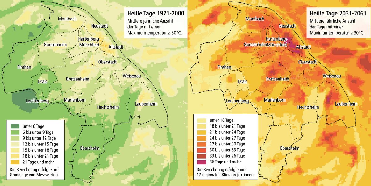 - Klimakarte Mainz Vergleich 1971 / 2060
