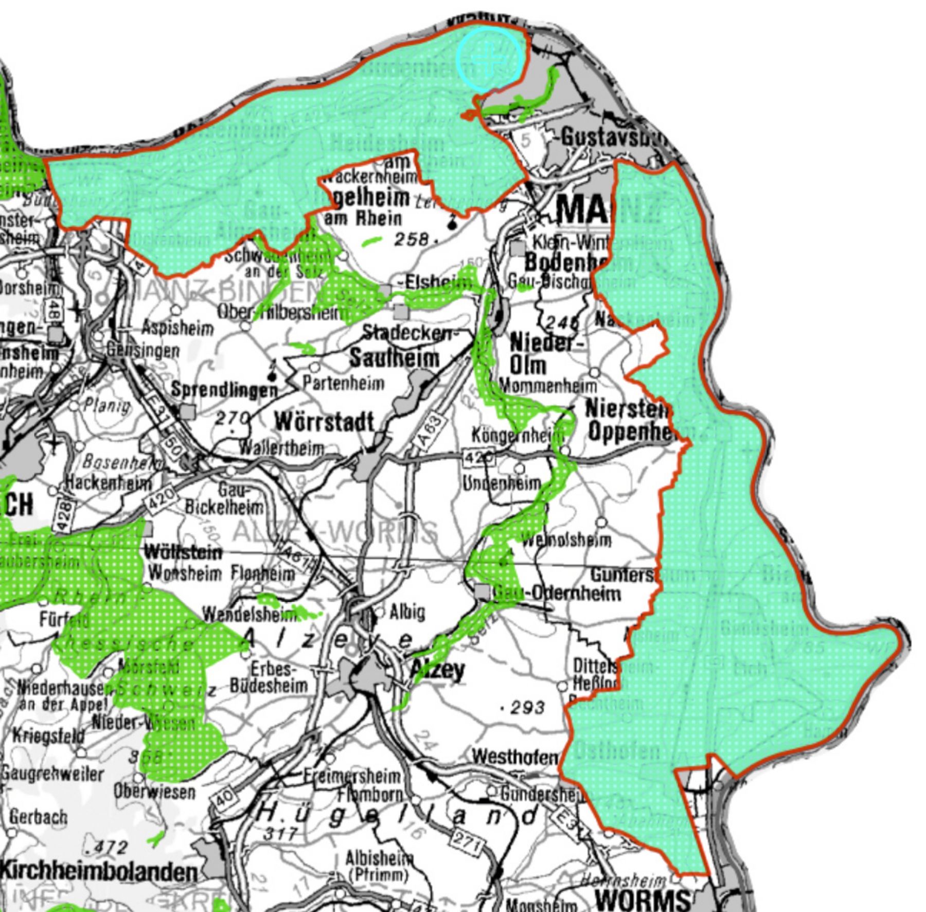 - die Bewahrung der Wildbrücken vom Wald zum Rhein (es ist die letzte östlich Budenheims),