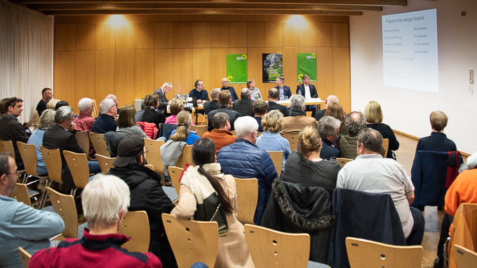 Die zahlreichen Besucher erlebten eine kurzweilige und sehr informative Veranstaltung. Magda Dewes (GRÜNE) begrüßte als Moderatorin die Teilnehmer und die Gäste aus der Kommunalpolitik und die zahlreichen Bürger*innen im nahezu voll besetzten kleinen Bürgerhaus. Klaus Neuhaus (Fraktionssprecher) stellte den Sachstand des Projektes in den Gremien dar und warum man "schon jetzt" diese Veranstaltung durchführt und nicht erst die landesplanerische Stellungnahme abwarten wollte, die im Falle eines negativen Bescheides, das "Aus" für die Bebauung bedeuten würde. Neuhaus führte aus, dass nur noch wenige Sitzungen der Gremien bis zum Ende der Legislatur stattfinden. Bis nach den Neuwahlen Ende Mai die Gremien wieder konstituiert und arbeitsfähig sind, ist locker ein halbes Jahr verstrichen, wertvolle Zeit, die bei dem ambitionierten Zeitplan für das Projekt hinterher nicht mehr aufzuholen ist.