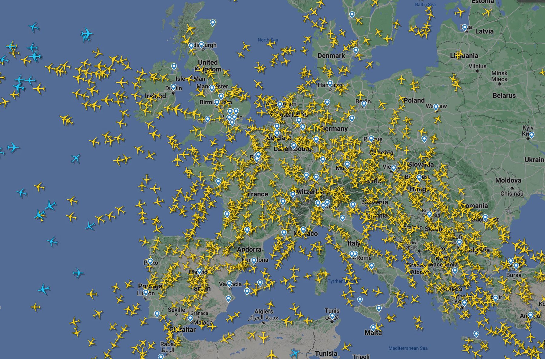 Hier kann man live verfolgen, (Bild anklicken) wieviel tausende Flieger gleichzeitig weltweit ihr Kerosin in der Atmosphäre verbrennen. Angesichts des drohenden Klimakollaps ein weiteres Beispiel für die verheerende Ignoranz des Homo Sapiens nicht nur gegenüber sich selbst.