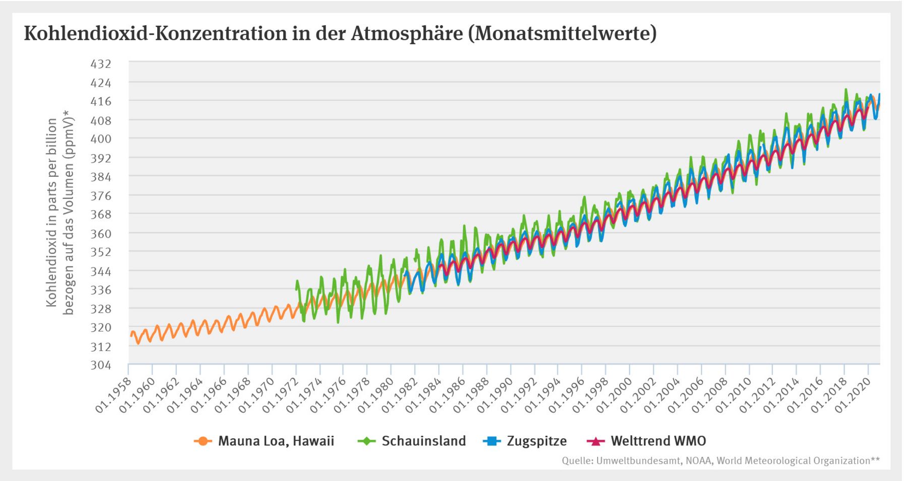 Das Umweltbundesamt berichtet auf seiner Webseite: ► Bedingt durch seine hohe atmosphärische Konzentration ist Kohlendioxid nach Wasserdampf das wichtigste Klimagas.