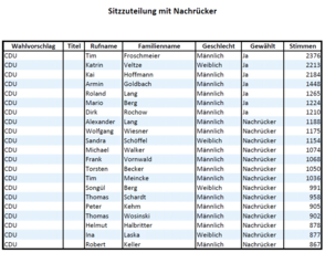 - Die CDU (-3 Sitze / -12% = 28,5%) kommt nur noch auf 7 Sitze.