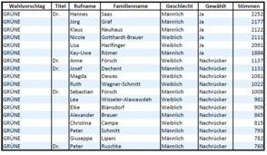 - Wir GRÜNE (-1) (-1,3% = 26,2%) haben zwar nur 1,3% verloren, mussten aber knapp einen Sitz abgeben.