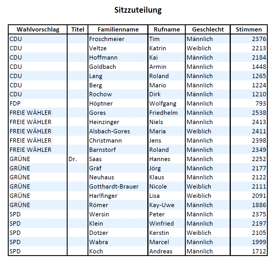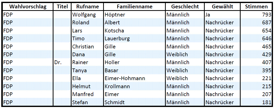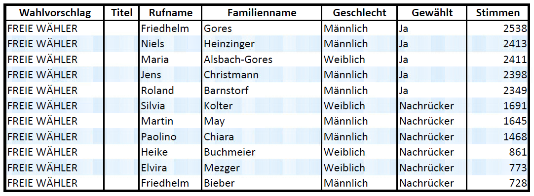 - Die FW (+5 Sitze / +21,1%) ist neu im Rat, und hat wohl in erster Linie der FDP- und CDU-Stimmen gekostet.