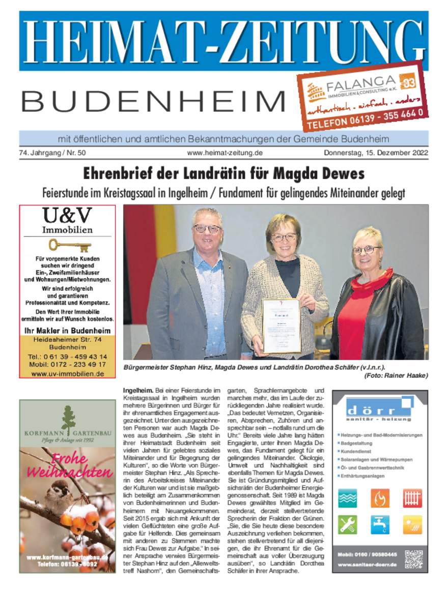 Frau Dewes steht in ihrer Heimatstadt Budenheim seit vielen Jahren für gelebtes soziales Miteinander und für Begegnung der Kulturen.