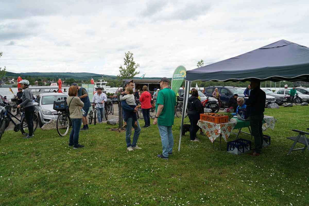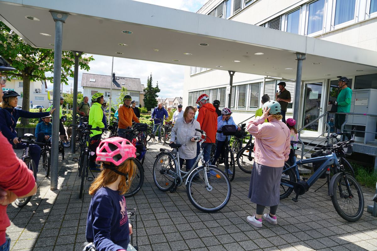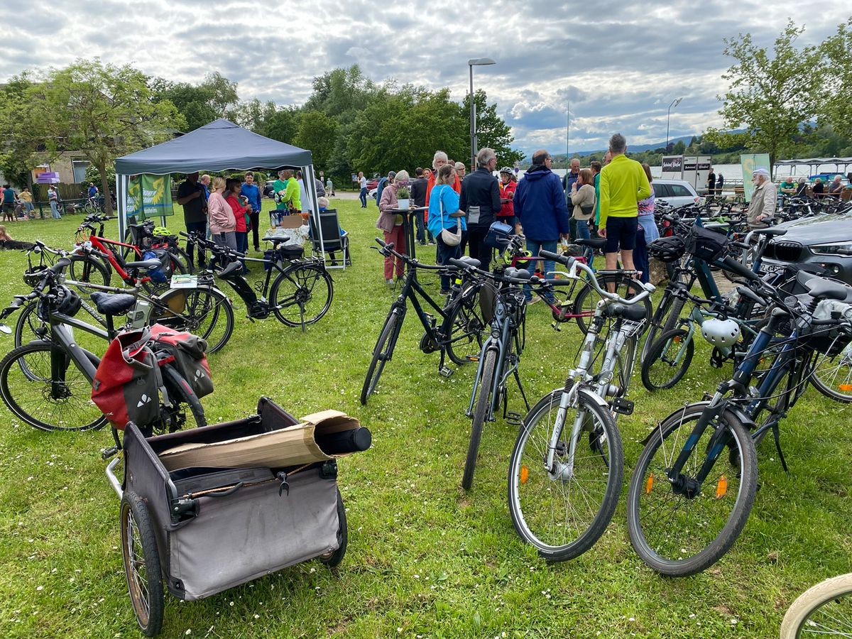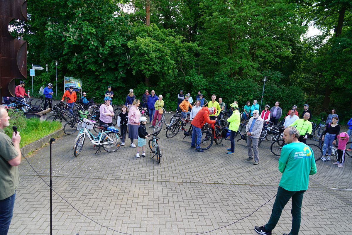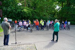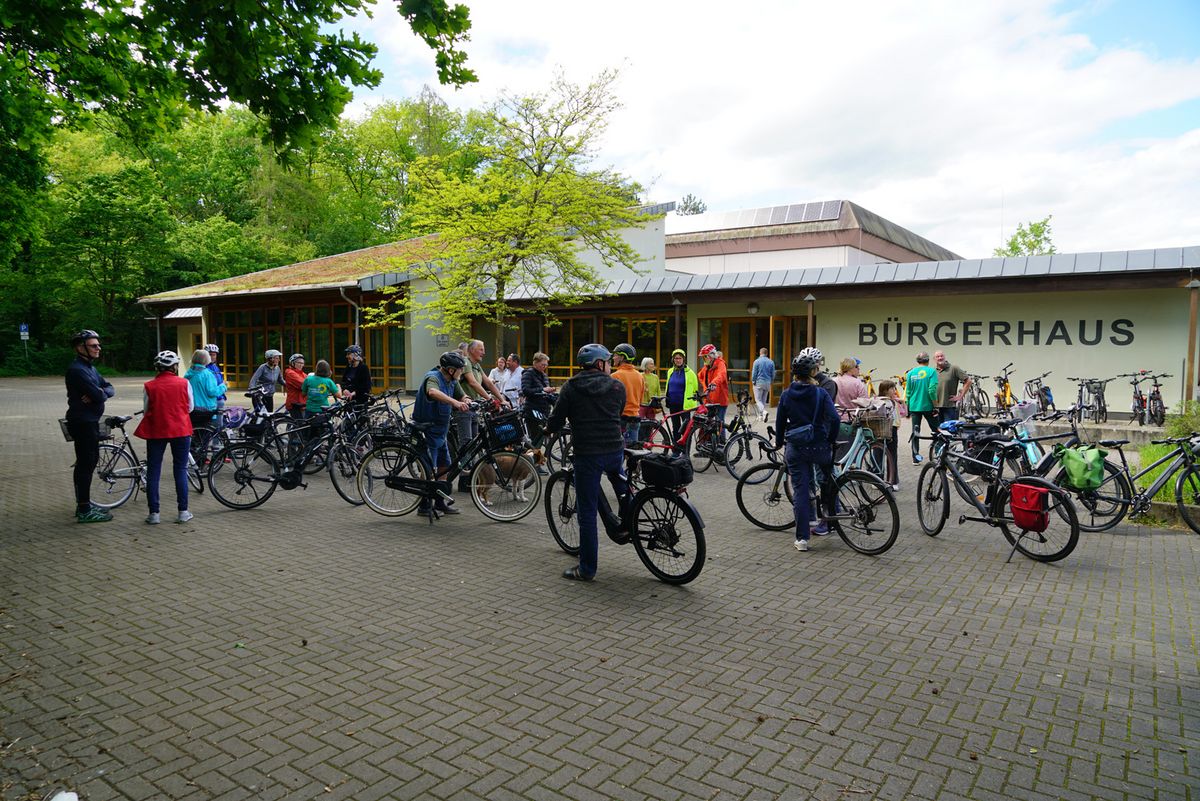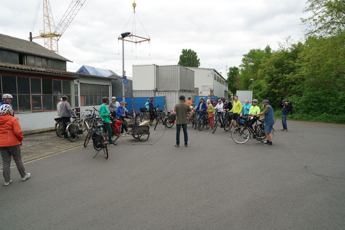Mit rund 50 Teilnehmer*innen von jung bis alt startete die Tour nach einer kurzen Ansprache von Kay Römer an der Waldsporthalle. Kay Römer und Jo Dechent haben die Tour ausgearbeitet. Sie führte zu neuralgischen Punkten für Radler*innen in Budenheim. Erste Station war das Rathaus mit seinem fürchterlichen Felgenverbieger, der anstatt an einen Radständer an einen Tauchsieder erinnert, der aus dem Boden schaut. Auch die unglückliche Verkehrsführung in der Margarentenstraße wurde dort angesprochen. Der Radstreifen auf der linken Seite (Blickrichtung Binger Str.) ist nur in Richtung Rathaus für Radfahrer zu nutzen, nicht jedoch, wie viele Autofahrer meinen, auch für Radler in Richtung Binger Straße. Das Rechtsfahrgebot gilt hier auch für Radler.