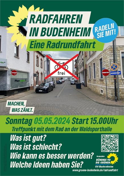 Am 05.05. starten wir an der Waldsporthalle zu einer Radrundfahrt durch Budenheim. Dabei machen wir Halt an neuralgischen Punkten, wo z.B. nach unserer Ansicht das Radfahren erleichtert werden könnte. Oder wo man Einbahnstraßen für Radler in beide Richtungen freigeben könnte. Wir freuen uns auch auf Ihre Ideen zum Thema, die wir dann in die politischen Gremien tragen.