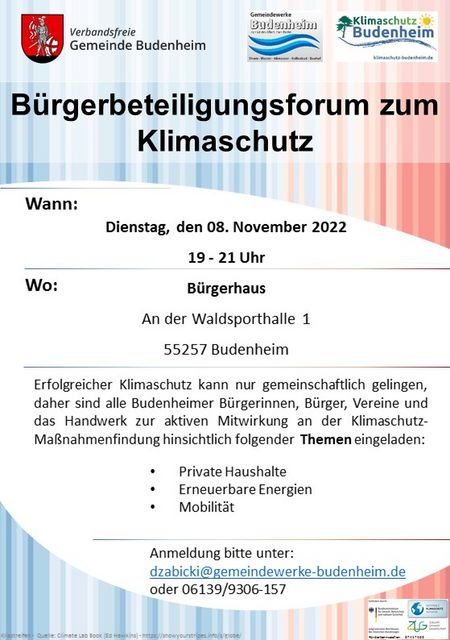 Vorankündigung Bürgerbeteiligungsforum Klimaschutz in Budenheim
